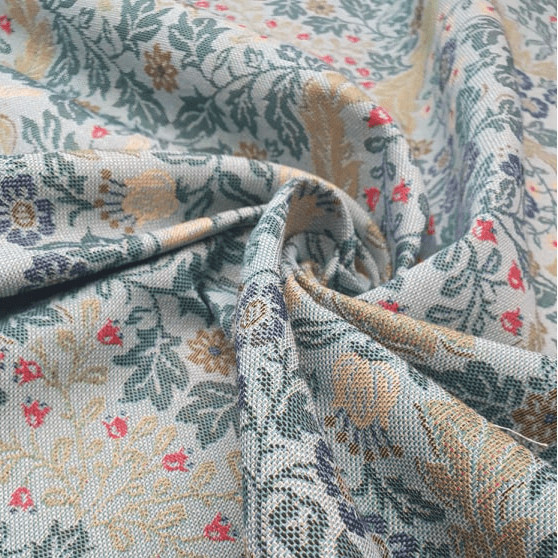 Home / Fabric Uses / Upholstery Fabrics Product Description ARBUSTUS Floral tapestry: Duck egg with multi floral Description Tapestry fabric: traditional ornate design with subtle floral accents. A duck egg blue background with vivid blues, greens and subtle red accents. A nod to William Morris Design, perfect to add a whimsical twist to your interior. Medium weight tapestry fabric perfect for curtains, upholstery and soft furnishings. Colour / Design: Arbustus Floral Tapestry: Duck egg with multi floral Composition: 55% COTTON 45% POLYESTER Width: 140cm Martindale Rub Test: Approx 20,000 Care Instructions: COOL WASH, COOL IRON Images We try to produce accurate images but the fabric colours can vary from screen to screen. If you are unsure please order a sample first. Click image to see a high resolution version. Samples / Images We try to produce accurate fabric images however colours can vary slightly when photographed and when viewed on different screens. If you are unsure please order a sample first.' Specifications Design Plants & Florals Product Code 3031 Weight 0.5kg Customer reviews No reviews left yet Write A Review Most RecentTop Rated Delivery & Returns Refunds & Returns We would rather you not return fabric we have cut to your required length so we would encourage you to order a sample first to make sure you are happy with your fabric choice.However, if you are not entirely satisfied with the fabric you have purchased through our website, you may return it to us within 14 days of receipt for a refund as long as the fabric is in its original condition and in its original length. ie; not cut further by the customer. Note: The refund excludes the initial postage cost.Returns should be sent back to the address below along with your name and order number. Buyer pays the cost to return the fabric.If there has been an error with your order or your fabric is damaged we will of course pay the postage costs for your order to be returned. Please contact us via email and we will send you a pre-paid label. Customer Reviews Arbustus Duck Egg - Cotton Mix Tapestry Fabric Item in Stock (8 Available) Product Code 3031 Please Select Required Length A4 Sample Metre £15.99