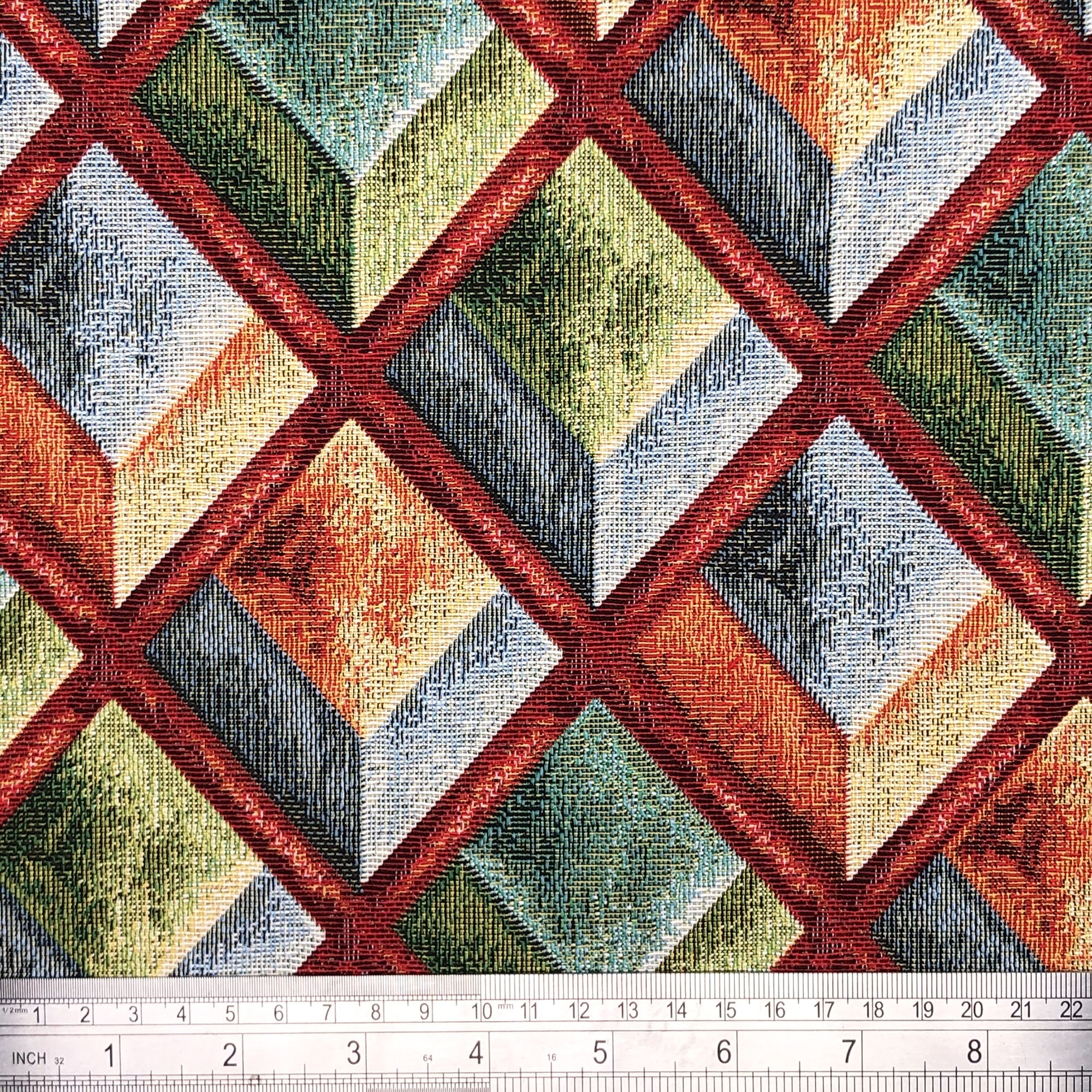 Home / Fabric Types / Tapestry Fabric Product Description Description New World tapestry fabrics are a collection of bold contemporary modern designs which are very popular due to their versatility. A cotton rich woven medium/heavy weight fabric which can be used for everything from Bag Making,Cushions, Tablecloths, Shoes, Apparel, Upholstery & Soft Furnishings and all things crafty! Colour / Design: KAHLO Composition: 80% COTTON 20% POLYESTER Width: 140cm Use: CURTAINS, SOFT FURNISHINGS, LIGHT USE UPHOLSTERY GSM: 360 Repeat Pattern: TBC Care Instructions: COOL WASH, COOL IRON Samples / Images We try to produce accurate fabric images however colours can vary slightly when photographed and when viewed on different screens. If you are unsure please order a sample first. Specifications Design Geometric Colour Multi-colour Material Cotton Polyester Width 140cm Identifier Exists False Use Curtains Upholstery Product Code 1581 Weight 0.57kg Customer reviews No reviews left yet Write A Review Most RecentTop Rated Delivery & Returns Refunds & Returns We would rather you not return fabric we have cut to your required length so we would encourage you to order a sample first to make sure you are happy with your fabric choice.However, if you are not entirely satisfied with the fabric you have purchased through our website, you may return it to us within 14 days of receipt for a refund as long as the fabric is in its original condition and in its original length. ie; not cut further by the customer. Note: The refund excludes the initial postage cost.Returns should be sent back to the address below along with your name and order number. Buyer pays the cost to return the fabric.If there has been an error with your order or your fabric is damaged we will of course pay the postage costs for your order to be returned. Please contact us via email and we will send you a pre-paid label. Customer Reviews Kahlo - - Cotton Mix Tapestry Fabric Item in Stock (29 Available) Product Code 1581 Select Required Length By The Metre A4 Sample £12.99