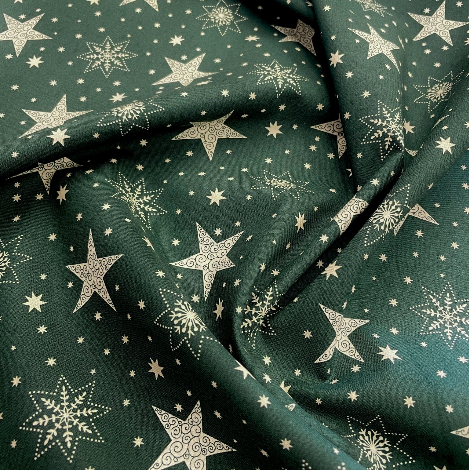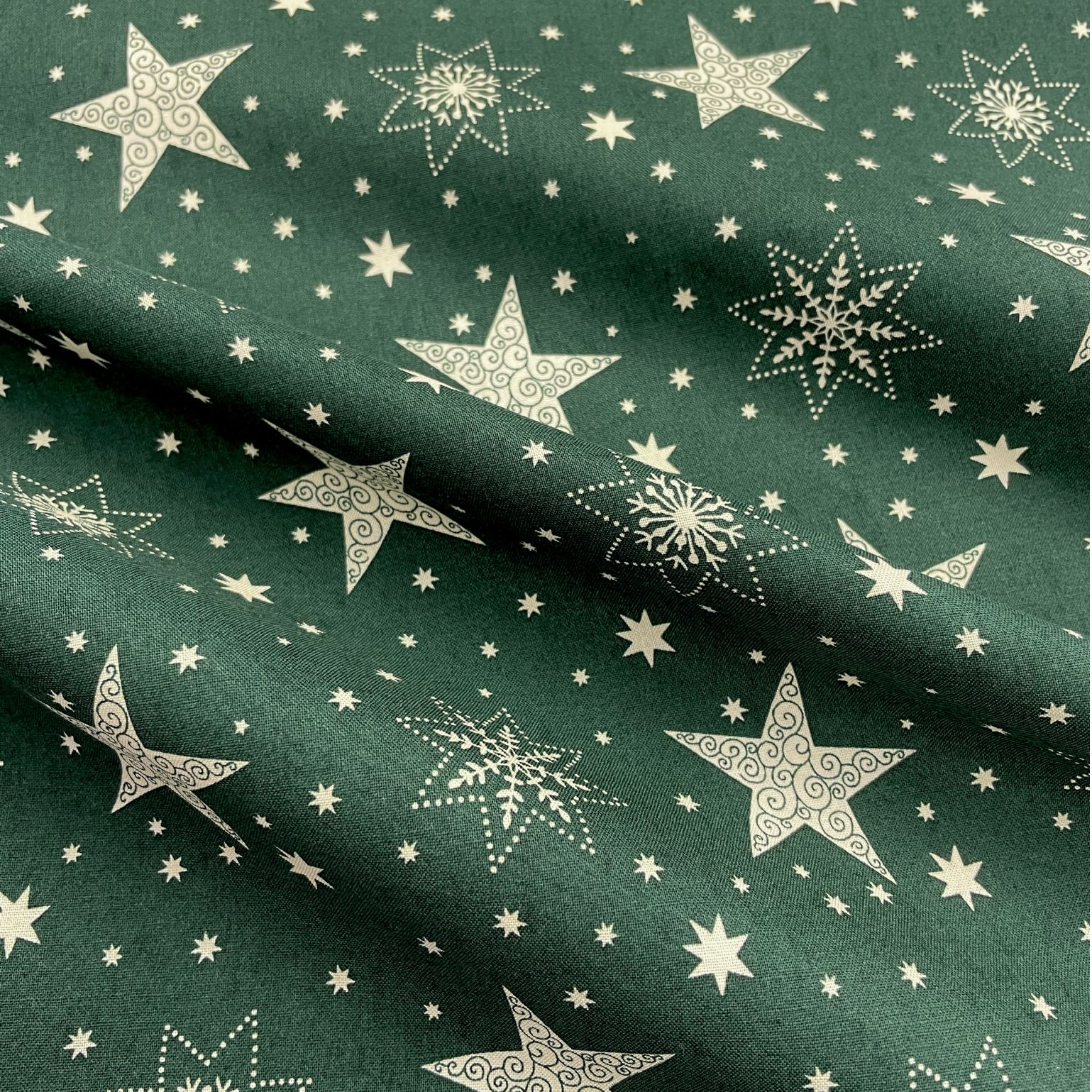 Home Product Description Fabric type: Printed cotton Colour/Design: Christmas stars and snowflakes on green Material composition: 100% Cotton Width: 150cm Care instructions: Cool wash, Cool iron Usage examples: Dress making, quilting, gift bags, decorations Please note: All fabric is cut to order and supplied in one continuous length. If you are unsure of the fabric choice, please order a sample first. Images: We try to produce accurate fabric images however colours can vary slightly when photographed and when viewed on different screens. If you are unsure please order a sample first. Specifications Colour Green Width 150cm Material Cotton Product Code CHR-STR-GRN Weight 0.05kg Customer reviews No reviews left yet Write A Review Most RecentTop Rated Delivery & Returns Refunds & Returns We would rather you not return fabric we have cut to your required length so we would encourage you to order a sample first to make sure you are happy with your fabric choice.However, if you are not entirely satisfied with the fabric you have purchased through our website, you may return it to us within 14 days of receipt for a refund as long as the fabric is in its original condition and in its original length. ie; not cut further by the customer. Note: The refund excludes the initial postage cost.Returns should be sent back to the address below along with your name and order number. Buyer pays the cost to return the fabric.If there has been an error with your order or your fabric is damaged we will of course pay the postage costs for your order to be returned. Please contact us via email and we will send you a pre-paid label. Customer Reviews Stars and Snowflakes on Green Christmas Fabric - 100% Cotton Item in Stock (23 Available) Product Code CHR-STR-GRN Size By The Metre Sample £8.99