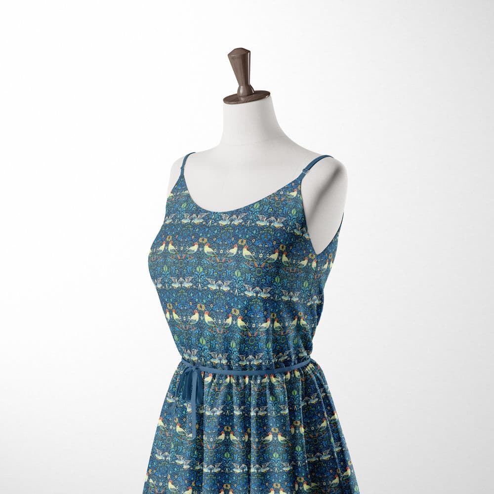 Home / Fabric Uses / Dress Fabrics Product Description Birds Design in 100% Cotton, a versatile Fabric with the OEKO-Tex Confidence in Textiles Standard 100 Certification. This fabric can be used for a variety of projects from Fashion to crafts, with an iconic design relating to the Strawberry Thief William Morris design. Fabric type: 100% Cotton Dressmaking Craft Fabric Colour/Design: Multicolour Birds on Blue Material composition: 100% Cotton Width: 115cm / 45" GSM: 125 Usage examples: Dress making/apparel, lightweight jackets, drapery Please note: All fabric is cut to order and supplied in one continuous length. If you are unsure of the fabric choice, please order a sample first. Images: We try to produce accurate fabric images however colours can vary slightly when photographed and when viewed on different screens. If you are unsure please order a sample first. Specifications Design Animal Width 114cm Colour Blue Product Code 4400 Weight 0.35kg Customer reviews No reviews left yet Write A Review Most RecentTop Rated Delivery & Returns Refunds & Returns We would rather you not return fabric we have cut to your required length so we would encourage you to order a sample first to make sure you are happy with your fabric choice.However, if you are not entirely satisfied with the fabric you have purchased through our website, you may return it to us within 14 days of receipt for a refund as long as the fabric is in its original condition and in its original length. ie; not cut further by the customer. Note: The refund excludes the initial postage cost.Returns should be sent back to the address below along with your name and order number. Buyer pays the cost to return the fabric.If there has been an error with your order or your fabric is damaged we will of course pay the postage costs for your order to be returned. Please contact us via email and we will send you a pre-paid label. Customer Reviews William Morris Birds - 100% Cotton Dressmaking Craft Fabric Item in Stock (110 Available) Product Code 4400 Please Select Required Length By The Metre Sample £14.95