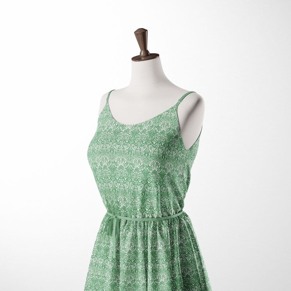 Home / Fabric Uses / Craft and Quilting Product Description From the William Morris Collection, Bluebell Design poplin fabric with in Sage Green on a White background. This fabric has received the OEKO-TEX Confidence in Textiles Standard 100 Certification. This fabric is digitally printed onto a premium 200 thread Count 100% Pure Cotton Fabric. The Cotton is Oeko Tested and uses reactive dyes so can be washed at a higher temperature without compromising the quality of the fabric. It has a GSM of 125 and with its beautiful flowing softness it has a wide range of usages from Fashion, Patchwork and a variety of Crafting ideas. Fabric type: 100% Cotton Dressmaking Craft Fabric Colour/Design: Bluebell in Sage Material composition: 100% Cotton Width: 115cm / 45" GSM: 125 Usage examples: Dress making/apparel, lightweight jackets, drapery Please note: All fabric is cut to order and supplied in one continuous length. If you are unsure of the fabric choice, please order a sample first. Images: We try to produce accurate fabric images however colours can vary slightly when photographed and when viewed on different screens. If you are unsure please order a sample first. Specifications Design Plants & Florals Width 114cm Product Code 4410 Weight 0.35kg Customer reviews No reviews left yet Write A Review Most RecentTop Rated Delivery & Returns Refunds & Returns We would rather you not return fabric we have cut to your required length so we would encourage you to order a sample first to make sure you are happy with your fabric choice.However, if you are not entirely satisfied with the fabric you have purchased through our website, you may return it to us within 14 days of receipt for a refund as long as the fabric is in its original condition and in its original length. ie; not cut further by the customer. Note: The refund excludes the initial postage cost.Returns should be sent back to the address below along with your name and order number. Buyer pays the cost to return the fabric.If there has been an error with your order or your fabric is damaged we will of course pay the postage costs for your order to be returned. Please contact us via email and we will send you a pre-paid label. Customer Reviews William Morris Bluebell in Sage - 100% Cotton Dressmaking Craft Fabric Item in Stock (17 Available) Product Code 4410 Please Select Required Length By The Metre Sample £14.95