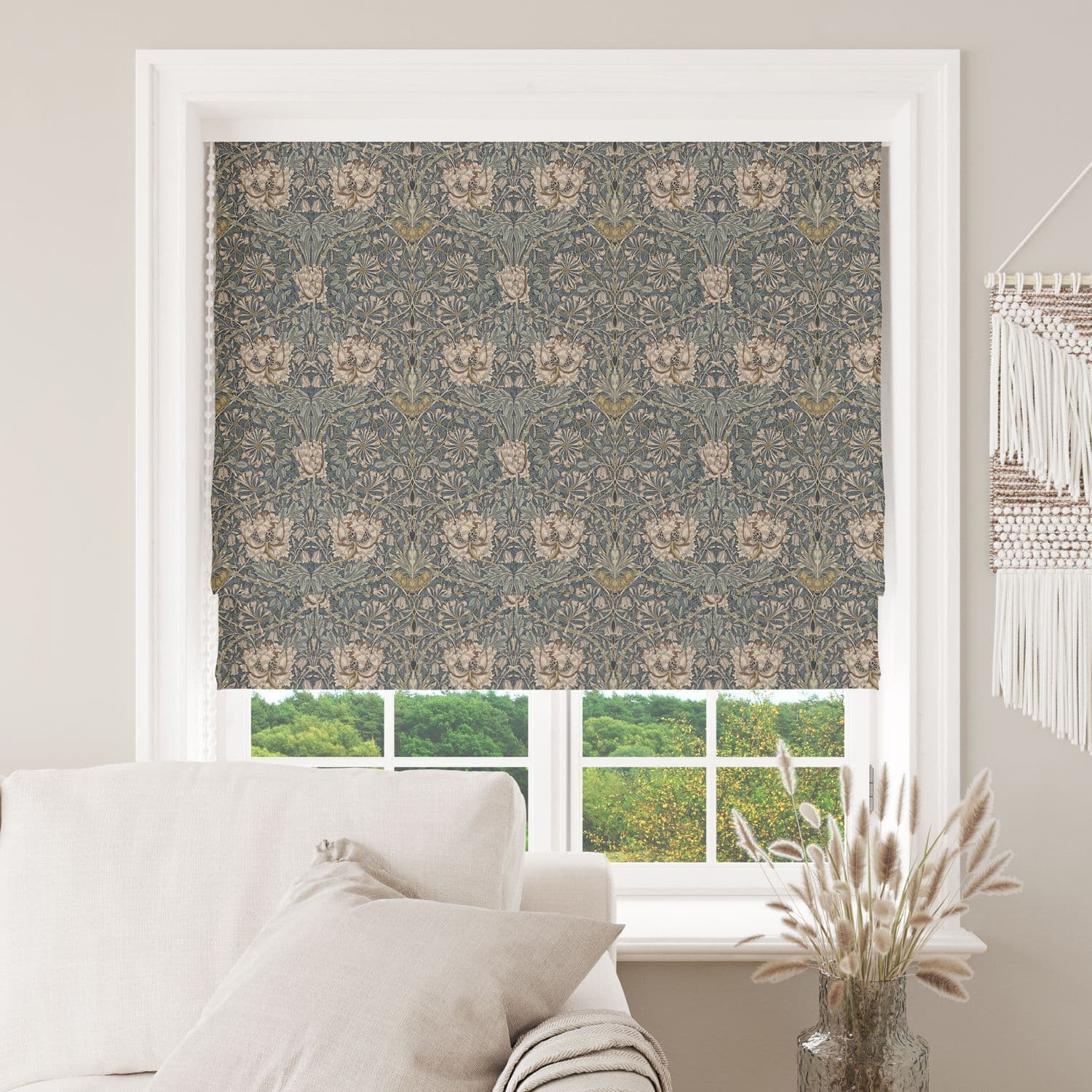 Home / Brands / William Morris Product Description Description William Morris Honeysuckle Steel fabric design is inspired by the environment and traditional heritage. These classic plant forms are intricate and detailed with complicated colour palettes.These classic designs would be an excellent choice to decorate any room. Fabric type: 100% Cotton Furnishing fabric Colour/Design: Honeysuckle Steel Material composition: 100% Cotton Width: 145cm /57" Usage examples: Ideal for curtains, blinds, light upholstery, cushions and much more Pattern repeat: 19cm vertical Please note: All fabric is cut to order and supplied in one continuous length. If you are unsure of the fabric choice, please order a sample first. Images: We try to produce accurate fabric images however colours can vary slightly when photographed and when viewed on different screens. If you are unsure please order a sample first. Specifications Design Plants & Florals Width 114cm Product Code WM01 Weight 0.45kg Customer reviews No reviews left yet Write A Review Most RecentTop Rated Delivery & Returns Refunds & Returns We would rather you not return fabric we have cut to your required length so we would encourage you to order a sample first to make sure you are happy with your fabric choice.However, if you are not entirely satisfied with the fabric you have purchased through our website, you may return it to us within 14 days of receipt for a refund as long as the fabric is in its original condition and in its original length. ie; not cut further by the customer. Note: The refund excludes the initial postage cost.Returns should be sent back to the address below along with your name and order number. Buyer pays the cost to return the fabric.If there has been an error with your order or your fabric is damaged we will of course pay the postage costs for your order to be returned. Please contact us via email and we will send you a pre-paid label. Customer Reviews William Morris Honeysuckle Steel Furnishings Cotton Item in Stock (12 Available) Product Code WM01 Please Select Required Length By The Metre A4 Sample £14.95